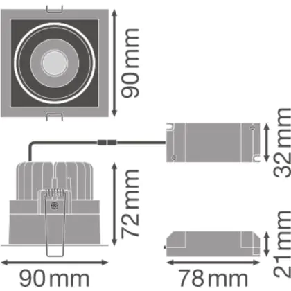 Descrizione Ledvance Faretti LED Piazza Scurolight Inclinabile Bianca 8W 650lm 36D - 830 Luce Calda | Ritaglio 83mm