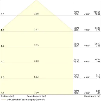 L'apertura del fascio luminoso indica l'angolo del fascio di luce proveniente da una lampada o lampadina. Si misura in gradi (D) e più piccolo è l'angolo, più piccola è l'apertura del fascio di luce.