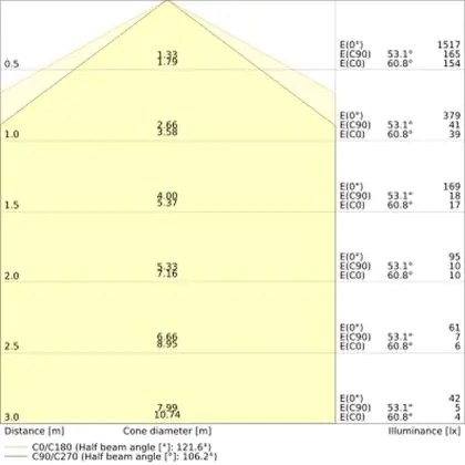 Il codice colore è una combinazione di resa cromatica (CRI) e colore della luce (Kelvin). La prima cifra indica la resa cromatica (1 = resa del colore molto bassa, 9 = massima resa del colore), mentre la seconda e la terza si riferiscono al colore della luce. Esempio: il codice colore 830 indica una buona resa cromatica (8) e luce bianca calda (3000K).