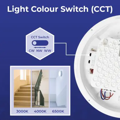 Per scegliere un apparecchio di illuminazione bisogna anche considerare dove verrà installato. Per esempio la luce di 2700 Kelvin (bianco molto caldo) e 3000 Kelvin (bianco caldo) creano un’atmosfera rilassante e piacevole. Questa tonalità è quindi molto adatta ad ambienti accoglienti o a zone generiche come corridoi, ascensori, disimpegni o pianerottoli. Una luce di 4000 Kelvin (bianco freddo), invece,è più luminosa e fresca ed è quindi adatta come illuminazione funzionale in uffici, aziende, scuole e biblioteche. La temperatura di colore di questa plafoniera LED è .