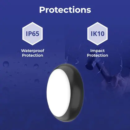 Un elemento importante delle plafoniere e delle applique LED è il loro livello di proezione IP, che indica la protezione contro l'ingresso di polvere e umidità/acqua. A partire da IP65, un apparecchio di illuminazione è a prova di polvere e acqua. Il valore IP di questa plafoniera LED è: . Stai cercando una plafoniera LED per esterni? Allora presta attenzione alla protezione da urti e impatti, ovvero il valore IK, che per questa lampada è .