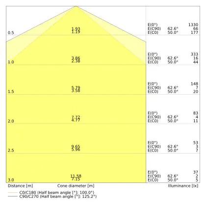 Il numero di lumen (lm) è la resa luminosa di una fonte di luce. Più alto è il numero di lumen, più luce emette la fonte luminosa. Il wattaggio e il numero di lumen non sono collegati tra loro. Una lampada a LED con un basso wattaggio può avere un numero di lumen più alto di una lampada convenzionale con un alto wattaggio.