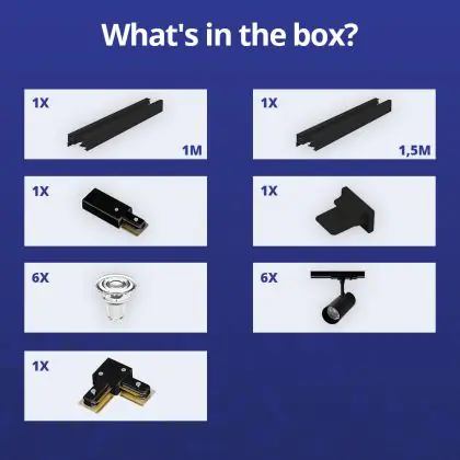 | Nome del fabbricante | Complete L shaped 1-Phase Track Set Black incl. 6x Spot fixture + GU10 2700K 3W Dim - 1 x 1,5 meter | |