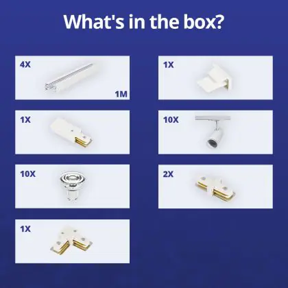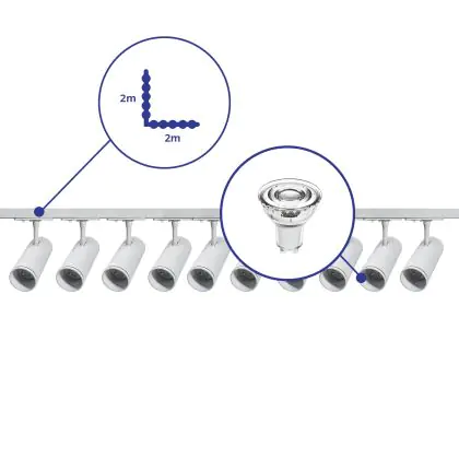 Descrizione Set completo 1-Fase Rail L 2 x 2 Metro Bianca | incl. 10x Faretti + GU10 2700K 3W Dimmerabile + Tappo Di Chiusura, Connettore di Alimentazione e L -Connettore
