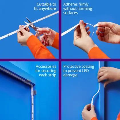 Con questa striscia LED di WiZ puoi illuminare ogni ambiente nel modo giusto. Infatti, le strisce LED possono essere posizionate anche negli angoli delle stanze e possono essere accorciate, tagliandoli nei punti appositi, o anche unite fra loro in modo da illuminare spazi molto estesi. Inoltre, si può scegliere tra vari colori di luce, che rende questa fonte di illuminazione adatta sia alle case che alle aziende. Questa striscia LED è .
